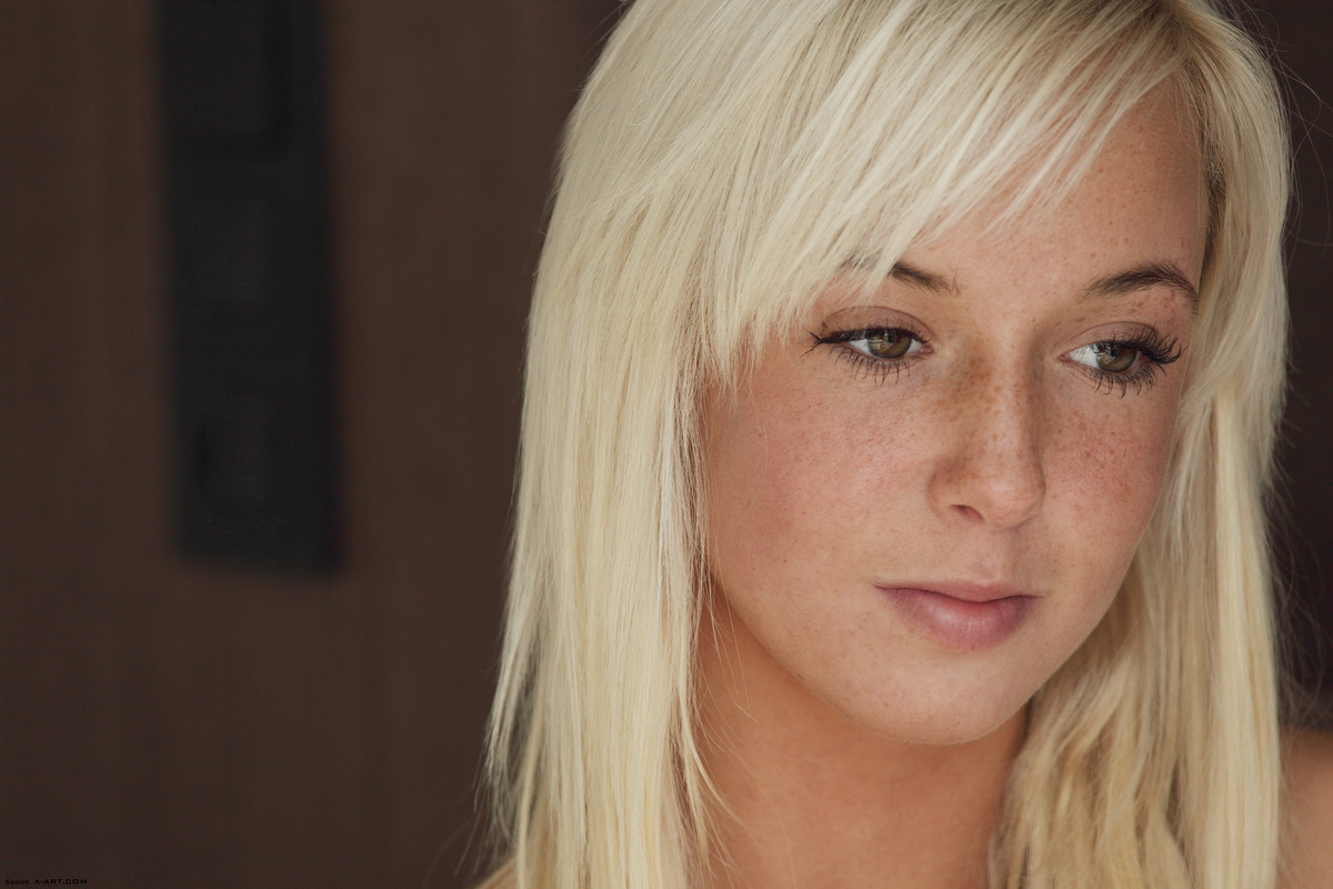 Naga blondyneczka ma idealnie przystrzyżoną szparkę i śliczne oczka. Sex modelka rozkłada nóżki i pieści różową pipkę paluszkiem.