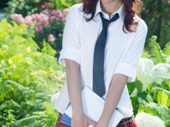 Słodka uczennica wróciła właśnie ze szkoły i po drodze się zmęczyła, usiadła na schodach i pokazała swoje małe cycki i i wydepilowaną cipę