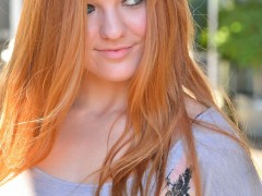 MA sztuczne włosy rude ale do niej pasują jak nic, fajna jest bo zawsze się uśmiecha a na planie zdjęciowym nie robi żadnego problemu, można z nią wszystko robić, nie jest wybredna i zawsze chętna do współpracy, zawsze chętna żeby pokazać swoją cipkę