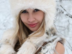 Założyła na głowę grubą puchową czapkę i na stopy puchowe buty i dobrze po według badań wystarczy na te części ciała coś ciepłego a reszta ciała może być naga i będzie ciepło, ta laska jest na to żywym dowodem, nie ma stanika i majtek i na śniegu siedzi nagą dupą, cipka także w śniegu zanurzona a cycuszki twardnieją i sutki twarde ale zimno jej nie jest
