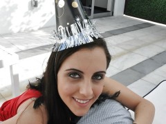 Soczysta cipeczka ładnej i uśmiechniętej brunetki